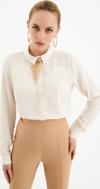 Gizli pat, uzun kol, çıkarılabilir aksesuarlı gömlek.