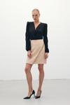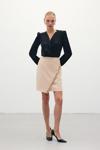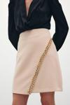 Zincir Aksesuarlı Mini Etek - Bej