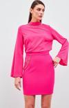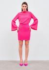 Sateen Zincir Aksesuarlı Mini Etek - Fuşya