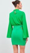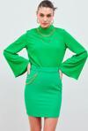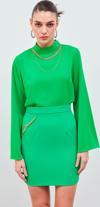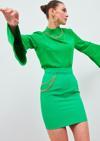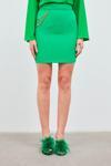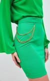 Yüksek bel, arka fermuarlı kapama, çıkarılabilir zincir aksesuarlı mini etek.