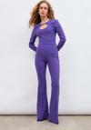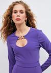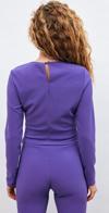 Pencere yaka, uzun kol, esnek kumaş, arka yaka düğmeli kapama, gold aksesuar detaylı crop bluz.