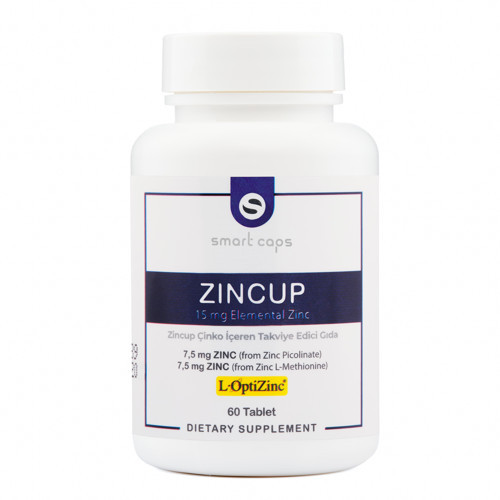 •Smart Caps ZINCUP, Çinko L-Metiyonin ve Çinko Pikolinat formunda tek tablette toplam 15 mg elementel çinko içermektedir.