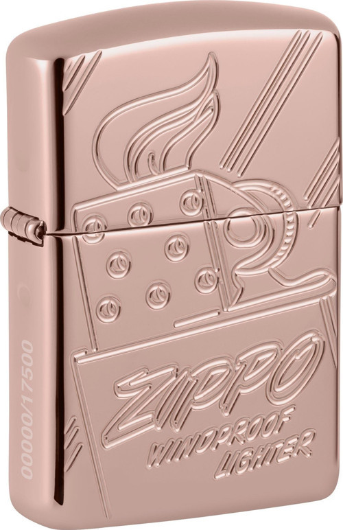 Zippo Armor: Bu stilize Zippo logosunun 75. yılını anan Zippo Script Logo Koleksiyonu, ikonik tasarımı, çarpıcı Armor® Rose Gold kasanın her iki yanında görünen lüks Deep Carve gravürüyle özel üretilmiştir. Bu lüks çakmak her biri ardışık olarak numaralandırılmıştır, Rose Gold bir iç aksam ve vintage bir alt damgaya sahiptir.
