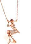 Zirkon taşlı gümüş rose kokoş kadın tasarım kolye
