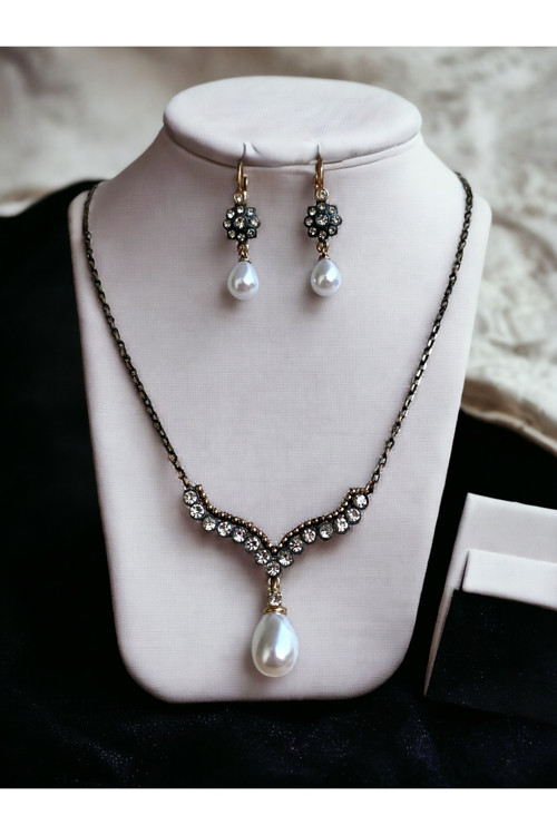 - Göz alıcı zirkon taşlarla süslenmiş, her anınıza şıklık katacak inci küpe seti.; - Zirkon taşların parıltısıyla dikkat çeken bu kolye ve küpe seti, zarif tasarımıyla göz kamaştırır.; - Bronz materyal kullanımı sayesinde hem dayanıklı hem de estetik bir görünüm sunar.; - İki parça olarak gelen bu set, hem kolye hem de küpe olmak üzere tam bir uyum sağlar ve kombinlerinizde mükemmel bir denge oluşturur.