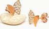 Zirkon taşlı kelebek figürlü gümüş üzerine rose altın kaplama küpe
