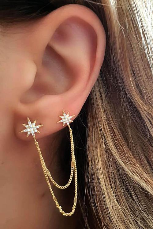 Zirkon taşlı Kutup yıldızı Gümüş Küpe