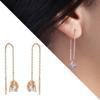 Tesbihane Zirkon Tektaşlı Sandviç Tasarım Rose Renk 925 Ayar Gümüş Sallantılı Küpe