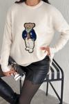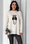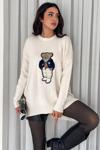 ZISHAN Ayıcıklı Triko Kazak - Aplike Ayıcık Ve Yandan Yırtmaç Detaylı Arkadan Uzun Tasarım Bisiklet Yaka V5