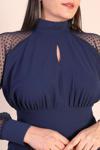 Uzun kollu tasarım soğuk havalarda ekstra koruma sağlarken, tül detaylarıyla hafiflik hissi verir
