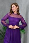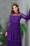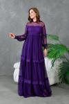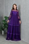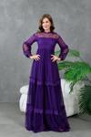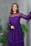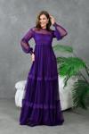 Zıshan Kadın Tül Abiye Elbise - Güpürlü Uzun Tül Kollu Dantel Yaka Nikah Düğün Elbisesi 134