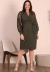 - Dantel materyaliyle sofistike bir dokunuş katarken, kuşak detayı bel bölgesini zarifçe vurgular.