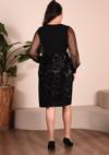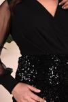 ZISHAN Kruvaze Yaka Kolda Tül Detaylı Eteği Payetli Midi Boy Esnek Kumaş Büyük Beden Abiye Elbise 016
