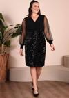 Zıshan Kruvaze Yaka Kolda Tül Detaylı Eteği Payetli Midi Boy Esnek Kumaş Büyük Beden Abiye Elbise 016