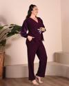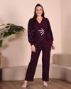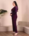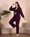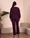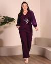 Zıshan Kruvaze Yaka Kolları Kadife İnci Yaprak Detaylı Büyük Beden Kadın İkili Takım 019