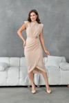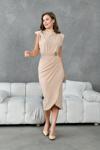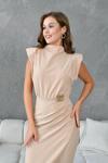 Metal Broş Detaylı Bel Drapeli Vatkalı Anvelop Kesim Kadın Elbise 409