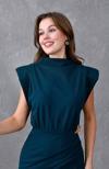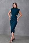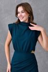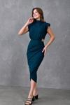 ZISHAN Metal Broş Detaylı Bel Drapeli Vatkalı Anvelop Kesim Kadın Elbise 409