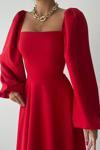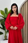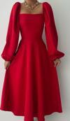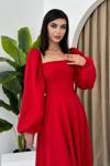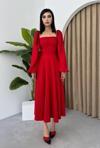 Zıshan Prenses Kesim Balon Kol Kare Yaka Midi Boy Kadın Elbise 011