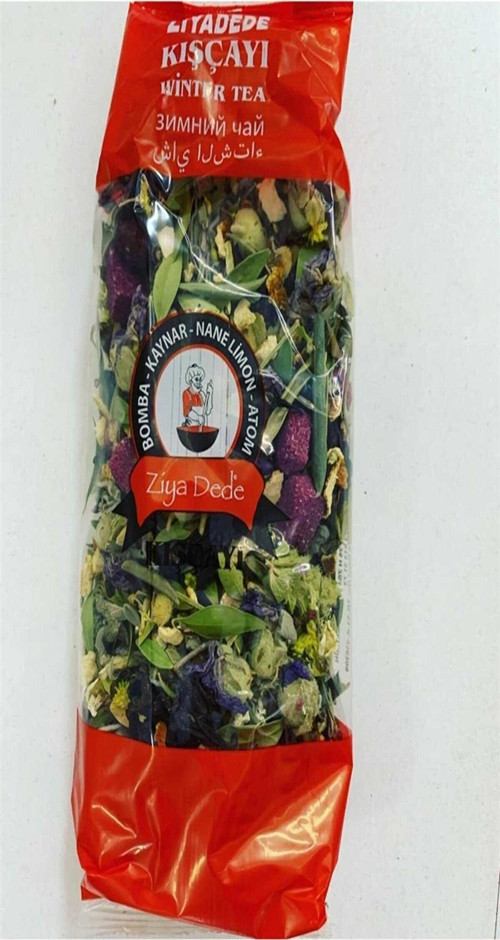| Ziya Dede Kış Çayı Mersin yaprağı, zeytin yaprağı, Altınotu, hatmi çiçeği, Adaçayı kuşburnu Atom çayı Hibisküs portakal kabuğu içeren karışık kış çayı |