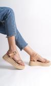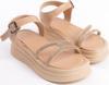 Joy Ayakkabı ZLOHE Kalın Tokalı Taşlı Şeritli Ortopedik Taban Kadın Sandalet CTT - Ten