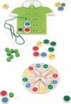 1 Ahşap gömlek. 16 ahşap düğme. İplikli 1 tahta iğne, eğirme için 1 çift makas, 10 fiş