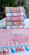Çeyizlik Kanaviçe Çiçek Desenli Püsküllü Bukle Lüks Mutfak Havlu Seti 30x50 6'lı Set %100 PAMUK