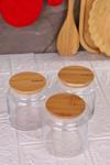 Zone - 3'lü Cam Saklama Kabı 600ml Vakumlu Bambu Kapaklı