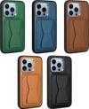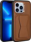 Zore İphone 12 Pro Max Uyumlu Kartlıklı Standlı Pu Deri Zore Memo Kılıf-Kahverengi