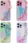 Zore İphone 12 Pro Max Uyumlu Simli Desenli El Askılı Tutacaklı Elsa Silikon Kılıf-Pembe