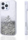 Zore İphone 15 Pro Max Kılıf Sıvılı Simli Şeffaf Arka Yüzey Zore Keto Silikon Kapak - Gümüş