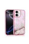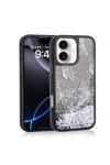 Zore İphone 16 Kılıf Sıvılı Simli Kelebek Baskılı Şeffaf Arka Yüzey Zore Glis Silikon Kapak - Siyah