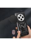 Zore Xiaomi Redmi 14C 4G Uyumlu Magnetik Standlı Kamera Korumalı Zore Sürgülü Vega Kapak-Siyah