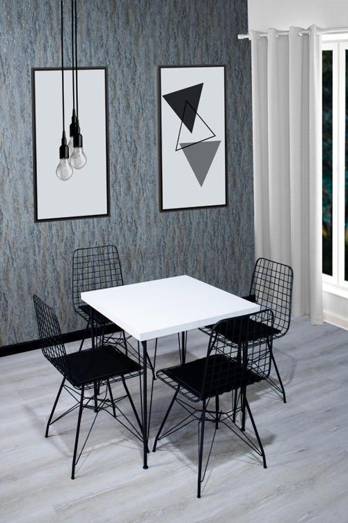 Zuesse Dizayn Diba 70X70 Yemek Masa Sandalye Takımı 4 Kişilik Telli Sandalye Salon Balkon Cafe Takım - Beyaz