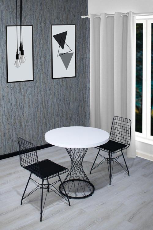 Zuesse Dizayn Elis Yemek Masa Sandalye Takımı 2 Kişilik Telli Sandalye Yuvarlak Hasır Masa 80 Cm - Beyaz