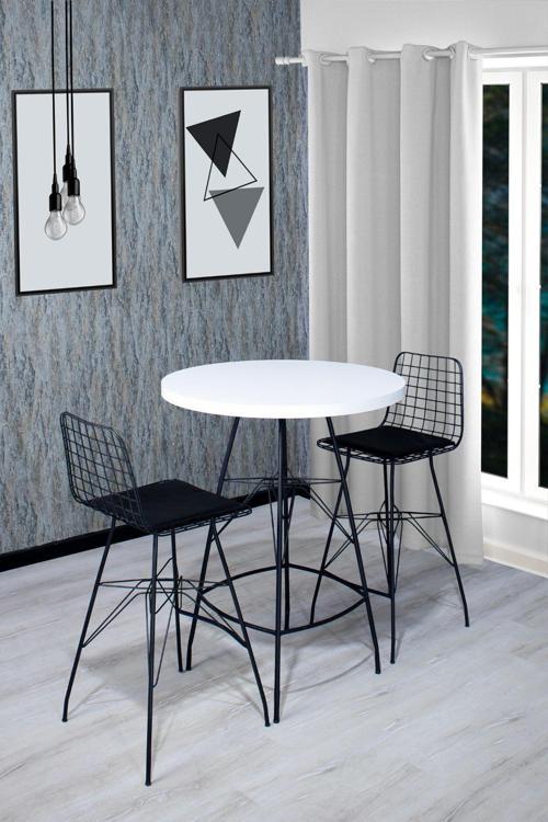Zuesse Dizayn Lina 80X100 Oval Mutfak Yemek Masası 2 Kişilik Çapraz Telli Bar Sandalyesi Cafe Masa - Beyaz