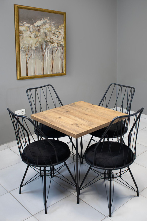 Zuesse Dizayn Napoli 70 X 70 Mutfak Yemek Masası 4 Kişilik Baklava Tel Sandalye Salon Cafe Masası - Çam