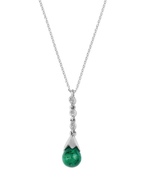 Zümrüt Damla Kolye 'mizi beyaz altın ile ürettik. 3 tane minik tohum üzerine pırlantalar mıhladık. Tüm parçalar tamamen hareketli biçimde birleştirildi. Her zaman şık olmasını bilen kadınların eşsiz takılarından biri...