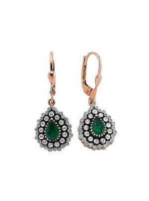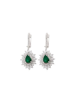2.10 Karat Pırlantalı Damla Zümrüt Küpe PKP036-1