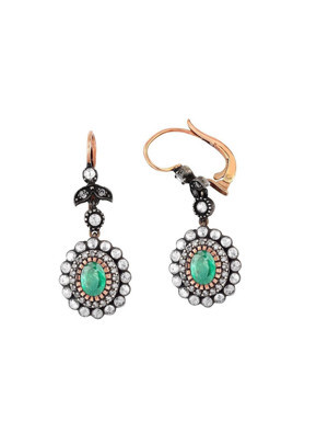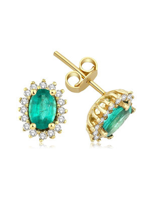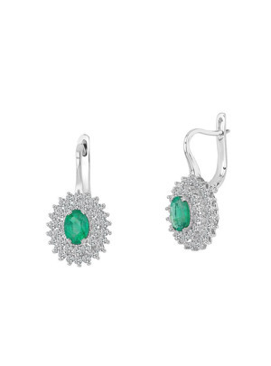 1.08 Karat Elmaslı Oval Zümrüt Küpe EE265