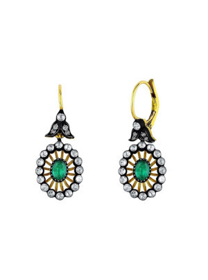 0.99 Karat Pırlantalı Oval Zümrüt Küpe PE086