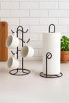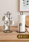 tezgah üstü mutfak seti, siyah metal fincanlık, kağıt havluluk standı, kupa bardak askılığı, mutfak organizer, minimalist mutfak aksesuarı, modern mutfak dekoru, fincan havluluk set, mutfak tezgah üstü düzenleyici, mutfak seti