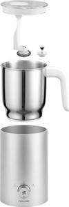 Bol köpüklü: ZWILLING ENFINIGY Süt Köpürtücü ile evde kolayca yapılan barista kalitesinde süt köpüğü hazırlayın. Karıştırma ve köpürtme için iki aparatı ile özellikle kremsi köpük sağlar. Köpük eklentisi sütün sürekli karıştırılmasını sağlar, böylece köpüğün özellikle küçük kabarcıklar oluşturması sağlanır. Sonuç, kıvamını özellikle uzun süre koruyan sert bir köpüktür. Elektrikli süt köpürtücü, 200 ml ılık veya 400 ml soğuk sütü ısıtmanıza olanak tanır. Ancak pratik mutfak aleti soya veya bezelye sütü gibi bitki bazlı süt alternatiflerini de köpürtüyor. Ve tüm bunlar bir düğmeye dokunarak hassas olarak yapılır. Kullanımdan sonra süt köpürtücünün temizlenmesi kolaydır. Paslanmaz çelik süt kabını çıkarın ve lavabodaki süt kalıntılarını kolayca temizleyin. Tüm ZWILLING ENFINIGY mutfak aletlerinin zarif minimalist tasarımı, Milano merkezli stüdyo Matteo Thun & Antonio Rodriguez'den geliyor ve süt köpürtücüyü diğer ZWILLING ENFINIGY Coffee World ürünlerine ideal bir katkı haline getiriyor. Barista kalitesinde kremsi köpük sağlar ; Çıkarılabilir paslanmaz çelik süt kabı sayesinde kolay temizlenir ; Sıcak veya soğuk içecekler için kullanılabilir ; Soya ve bezelye sütü gibi bitki bazlı süt alternatifleri için de uygundur ; Milano merkezli Matteo Thun & Antonio Rodriguez tarafından minimalist tasarım ;
